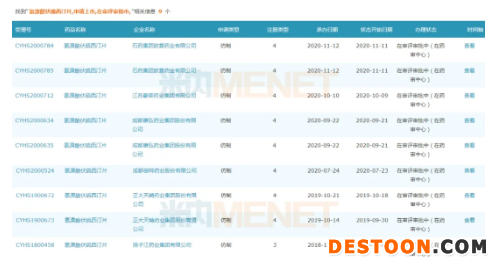 在此之前,揚(yáng)子江藥業(yè)、正大天晴藥業(yè)集團(tuán)、江蘇豪森藥業(yè)、成都倍特藥業(yè)等5家企業(yè)已提交了上市申請(qǐng),在審評(píng)審批中(在藥審中心)。從狀態(tài)開(kāi)始時(shí)間來(lái)看,揚(yáng)子江藥業(yè)最早。