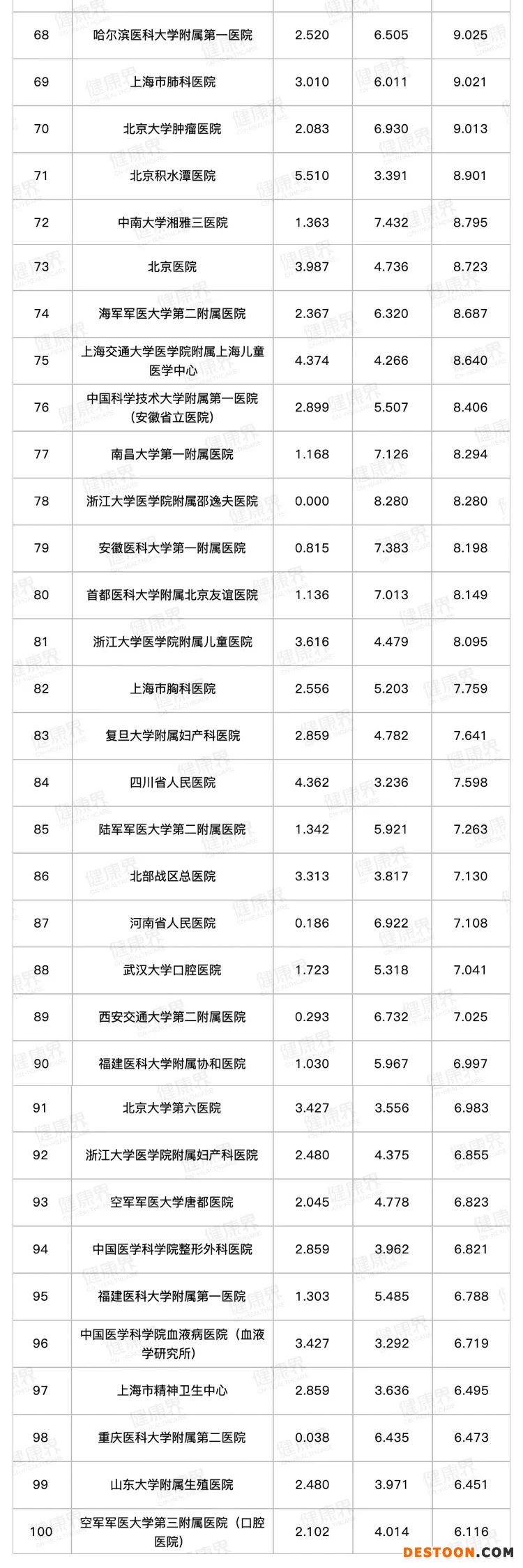 相比2018年,2019年度綜合榜單前三名并無變化,北京協(xié)和醫(yī)院、四川大學(xué)華西醫(yī)院和解放軍總醫(yī)院繼續(xù)領(lǐng)跑。