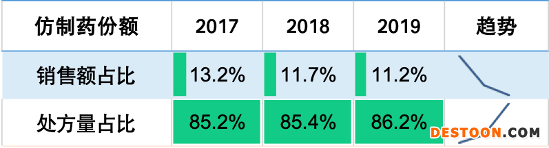 醫(yī)保局在通過一致性評價基礎(chǔ)上,按低價強制進行替代,相對理論依據(jù)充分,也符合歐美發(fā)達國家藥品使用慣例。比如美國市場,仿制藥處方就占到總量的近 9 成,銷售額只有 1 成,節(jié)省了大量的醫(yī)保開支。