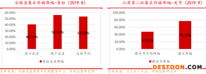 一個是 2019 年 7 月份,安徽、江蘇針對骨科植入(脊柱)類、眼科(人工晶體)類、冠脈支架等品種開展集中帶量采購,也被官方認證為器械集采改革的破冰。所以安徽、江蘇這兩個省份選擇品類尤其值得重視。