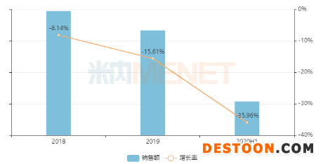 目前市場(chǎng)上的泮托拉唑注射劑主要為注射用泮托拉唑鈉,適用于十二指腸潰瘍、胃潰瘍、急性胃粘膜病變,復(fù)合性胃潰瘍等急性上消化道出血。該產(chǎn)品在中國(guó)公立醫(yī)療機(jī)構(gòu)終端銷(xiāo)售額峰值出現(xiàn)在2016年,接近88億元,2019年回落至67億元,2020上半年領(lǐng)軍企業(yè)揚(yáng)子江藥業(yè)集團(tuán)市場(chǎng)份額達(dá)28.07%,南京正大天晴制藥份額不到1%。