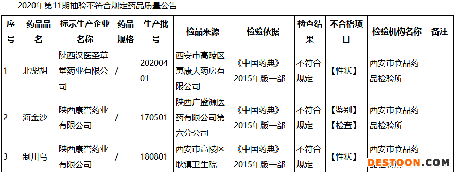 無獨有偶,就在幾天前,陜西省藥監(jiān)局發(fā)布了2020第11期藥品質(zhì)量公告(以下簡稱“公告”)。