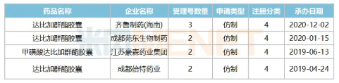 圖1:齊魯制藥的達比加群酯膠囊注冊情況