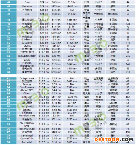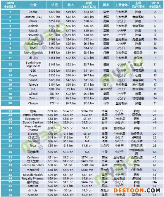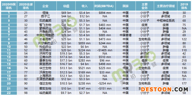 除恒瑞外,揚(yáng)子江、石藥集團(tuán)、智飛生物、豪森藥業(yè)、齊魯制藥、中國(guó)生物制藥、長(zhǎng)春高新、片仔癀藥業(yè)和科倫藥業(yè)位居全球前50名,基本比起去年均有了較為明顯的跨越。