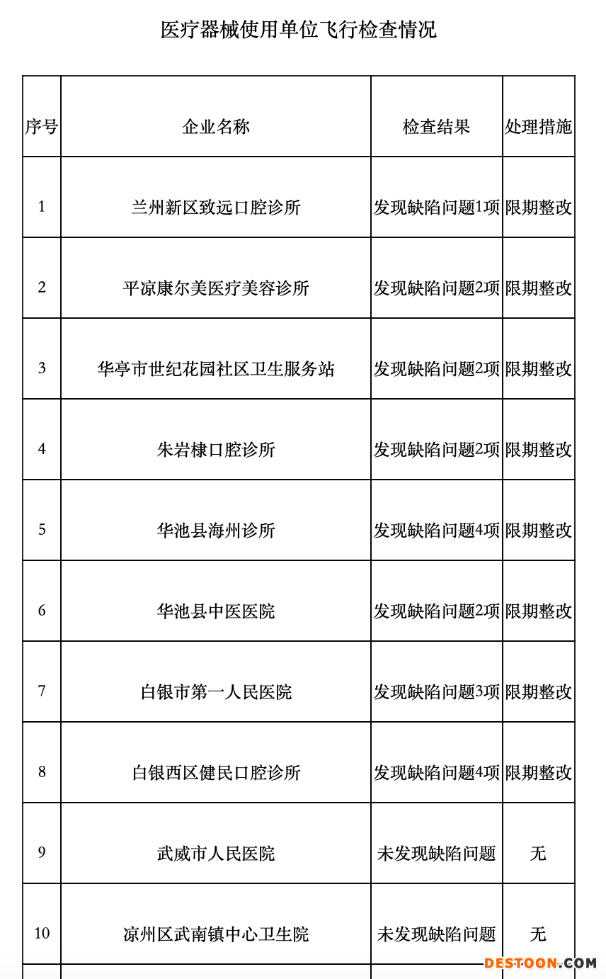 12月11日, 甘肅省藥品監(jiān)督管理局網(wǎng)站發(fā)布的《關(guān)于2020年度部分醫(yī)療器械使用單位飛行檢查情況的通告》顯示,根據(jù)《醫(yī)療器械監(jiān)督管理條例》《醫(yī)療器械使用質(zhì)量監(jiān)督管理辦法》等法規(guī)、規(guī)章規(guī)定,2020年11月16日-11月25日,甘肅省藥品監(jiān)督管理局組織檢查組對省內(nèi)部分醫(yī)療器械使用單位進行了飛行檢查。