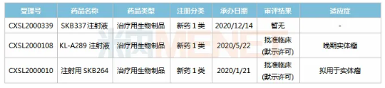 12月14日,科倫藥業(yè)控股子公司四川科倫博泰生物以新藥1類提交的SKB337注射液臨床申請(qǐng)獲得CDE承辦受理,受理號(hào)為CXSL2000339。2020年至今,科倫藥業(yè)已有3款1類新藥申報(bào)臨床(均為治療用生物制品),其中2款已獲批臨床,均為抗腫瘤藥。