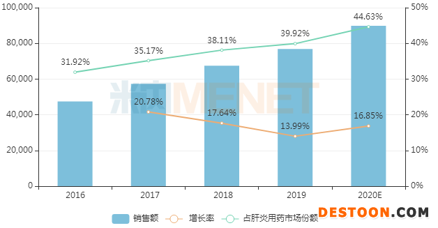片仔癀具有清熱解毒、涼血化瘀、消腫止痛的功效,臨床上可用于癰疽疔瘡、無名腫毒、跌打損傷,對急性肝炎、眼炎、耳炎等一切炎癥引起的疼痛、發(fā)熱等癥也有很好的療效。米內(nèi)網(wǎng)數(shù)據(jù)顯示,在中國城市實體藥店終端肝炎用藥市場中,片仔癀一直高居榜首,且市場份額逐年上升,預(yù)計2020年將實現(xiàn)銷售收入近9億元,同比增長16.85%。