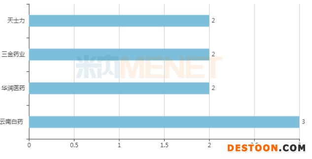 29個銷售額超過3億元的獨(dú)家中成藥涉及24家藥企(以集團(tuán)計),其中云南白藥、華潤醫(yī)藥、三金藥業(yè)、天士力4家企業(yè)的品種數(shù)達(dá)2個及以上。