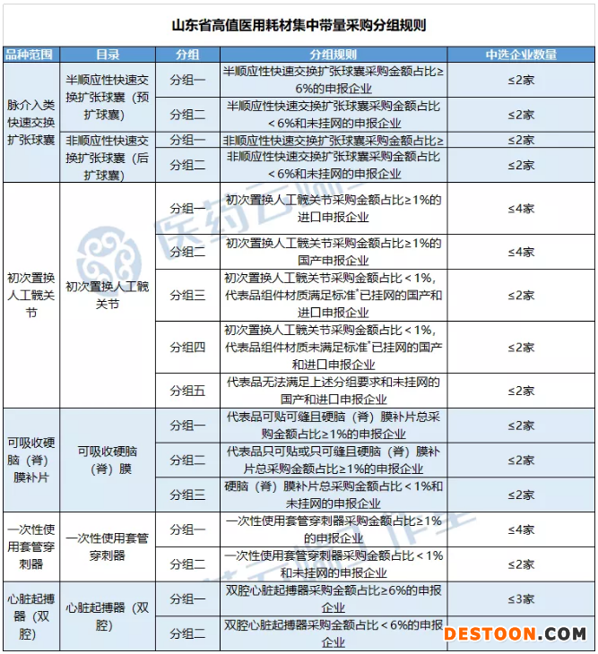 同日,山東省發(fā)布《山東省高值醫(yī)用耗材集中帶量采購文件(征求意見稿)》,擬對冠脈介入類快速交換擴張球囊、初次置換人工髖關(guān)節(jié)、可吸收硬腦(脊)膜補片、一次性使用套管穿刺器、心臟起搏器(雙腔)五款耗材進行帶量采購。