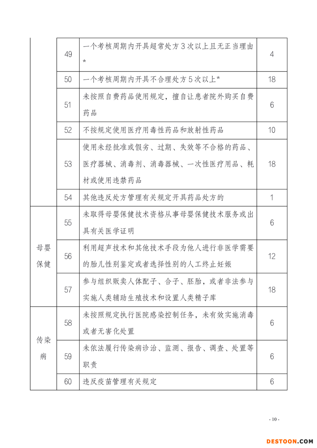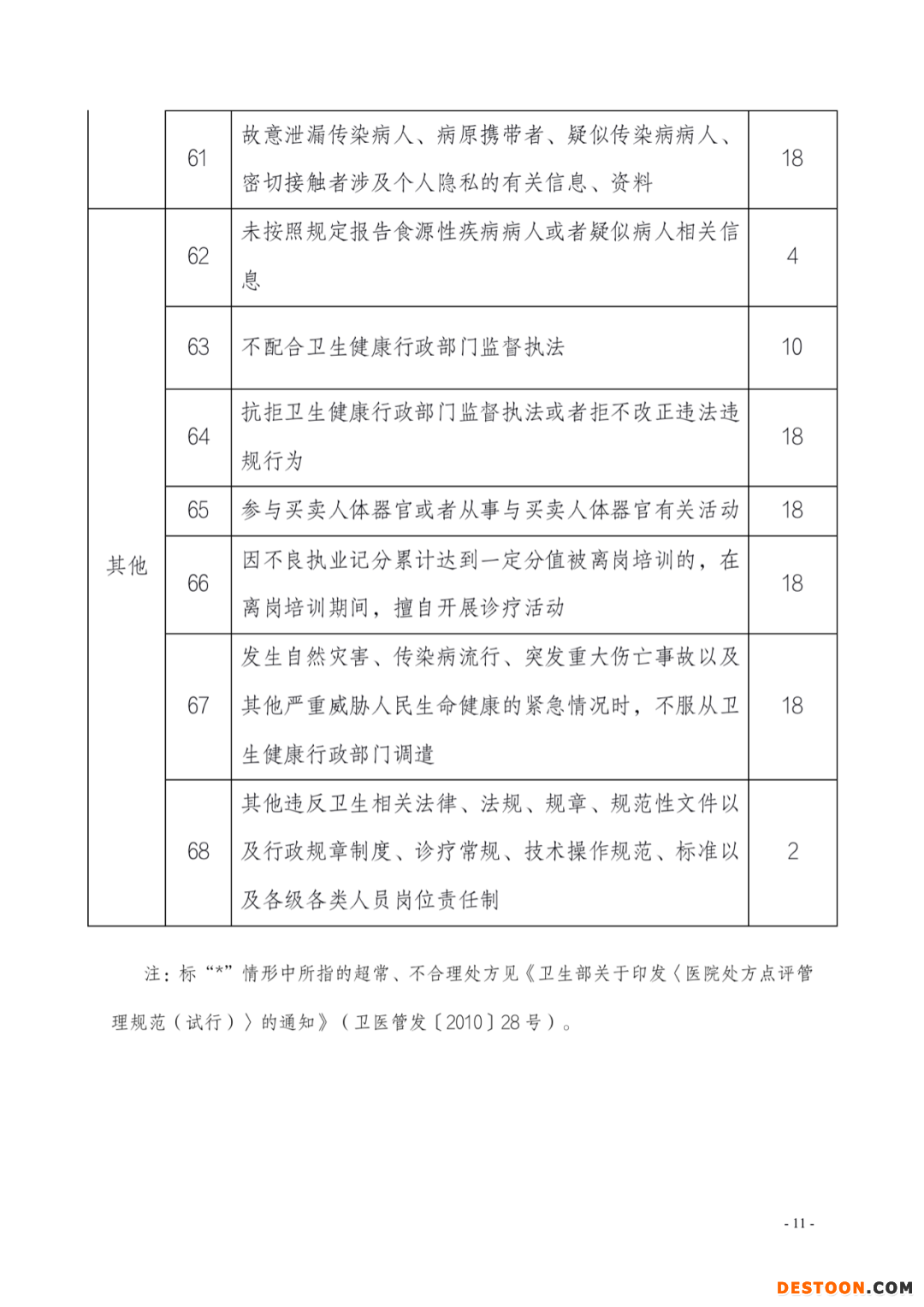 值得注意的是,醫(yī)生出現(xiàn)不同的行為,對應不同的分值,記分在1-18分不等,其中18分為最重的記分,同時被記18分的行為還有:一個考核周期內(nèi)開具不合理處方5次以上;參與買賣人體器官或者從事與買賣人體器官有關(guān)活動等。