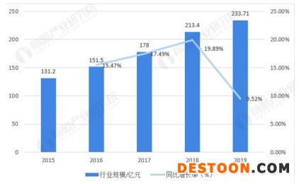 近年來,隨著人們經(jīng)濟(jì)生活、文化消費(fèi)水平的提高以及對(duì)口腔健康的認(rèn)識(shí),我國(guó)口腔器械市場(chǎng)規(guī)模呈現(xiàn)不斷增長(zhǎng)的趨勢(shì)。2019年我國(guó)口腔器械市場(chǎng)規(guī)模達(dá)233.71億元,較2018年的213.44億元增長(zhǎng)9.50%,2015-2019年復(fù)合增長(zhǎng)率為15.53%。