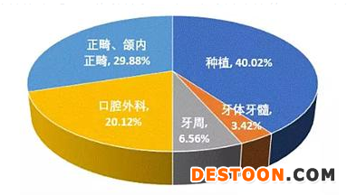 另外從口腔醫(yī)療患者就診結(jié)構(gòu)來看,牙齒種植患者占比40.02%,比例最高,其次是牙齒正畸及頜內(nèi)正畸,占比29.88%,發(fā)展勢(shì)頭迅猛。