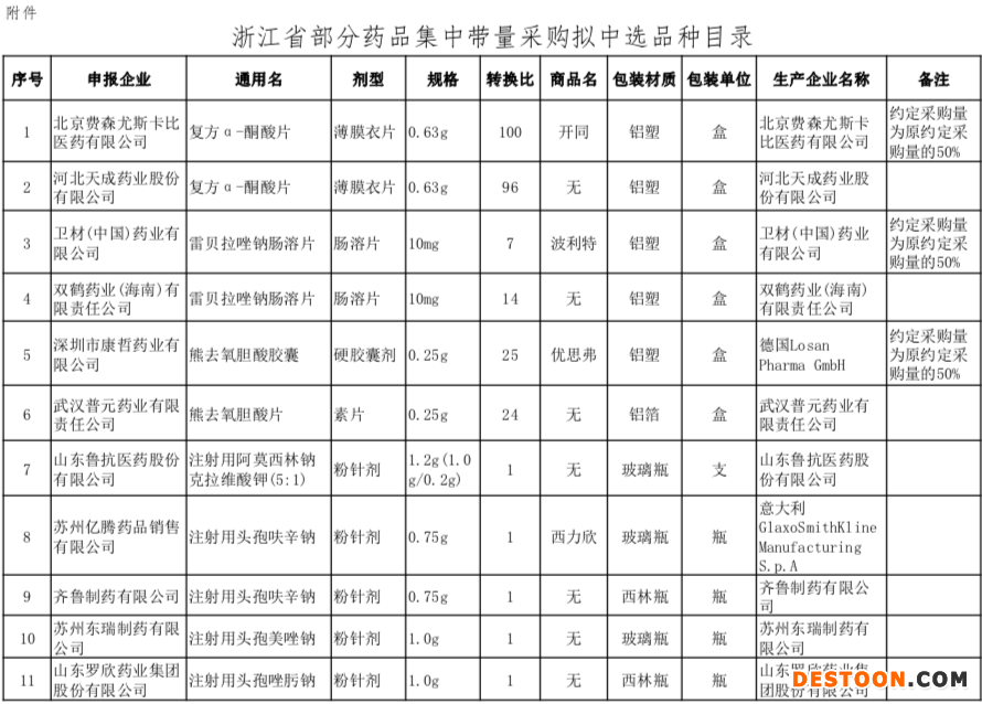 中選企業(yè)有:北京費森尤斯卡比、河北天成藥業(yè)、衛(wèi)材(中國)藥業(yè)、雙鶴藥業(yè)(海南)、深圳市康哲藥業(yè)、武漢普元藥業(yè)、山東魯抗醫(yī)藥、蘇州億騰藥品銷售、齊魯制藥、蘇州東瑞制藥、山東羅欣藥業(yè)集團,共11家藥企。