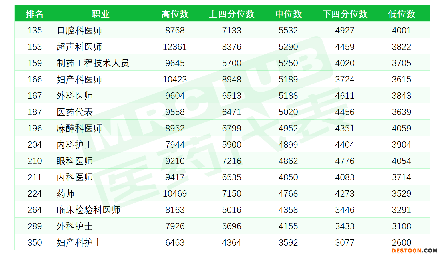 12月29日訊 本周二,武漢市人社局發(fā)布了一份企業(yè)薪酬調(diào)查結(jié)果,大咪看了下,醫(yī)藥代表排在187名,月收入中位數(shù)是 5020 元……