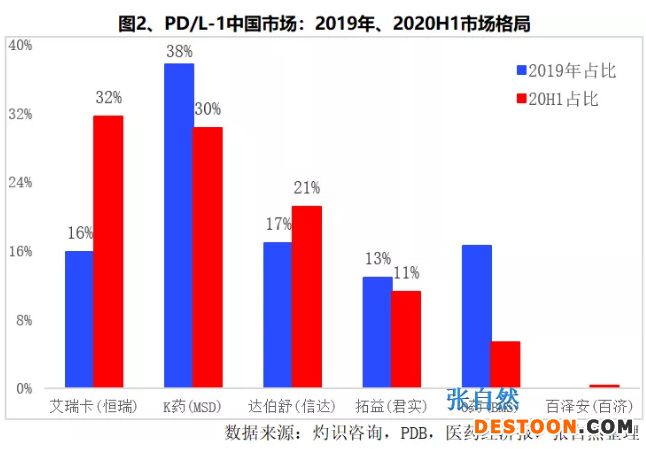 醫(yī)保方為患者減輕了負(fù)擔(dān),而相關(guān)企業(yè)的競爭也將進(jìn)一步加劇,2019年君實和信達(dá)的市場份額僅相差6個百分點,而今年上半年信達(dá)已是君實的兩倍,可見進(jìn)入醫(yī)保使信達(dá)受益匪淺,2019年還是由K藥獨霸市場,占38%,而今年上半年,恒瑞已異軍突起,市場份額較2019年翻了一倍,隨著明年3月后醫(yī)保談判結(jié)果的落地,PD/L-1的市場格局將進(jìn)一步洗牌,已進(jìn)了醫(yī)保的國產(chǎn)PD-1將全面發(fā)力,尤其恒瑞的艾瑞卡。
