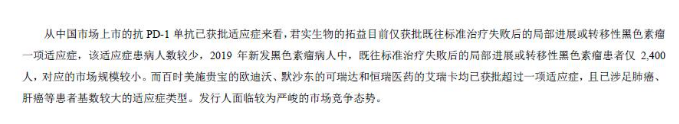 君實生物特瑞普利單抗面對的適應(yīng)癥人群同樣較少,在2019年的新發(fā)黑色素瘤病人中,既往標(biāo)準(zhǔn)治療失敗之后的局部進(jìn)展或轉(zhuǎn)移性黑色素瘤患者僅為2400人。