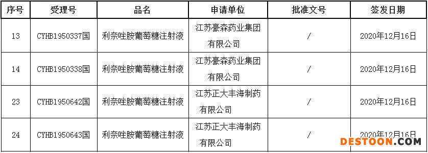 截至目前,利奈唑胺葡萄糖注射液已有江蘇豪森藥業(yè)和江蘇正大豐海制藥兩家企業(yè)過評(píng),而在此之前,該產(chǎn)品并沒有企業(yè)過評(píng)。此外,浙江醫(yī)藥新昌制藥廠的一致性評(píng)價(jià)補(bǔ)充申請(qǐng)?jiān)趯徳u(píng)審批中(在藥審中心);廣州綠十字制藥、石家莊四藥、揚(yáng)子江藥業(yè)集團(tuán)上海海尼藥業(yè)等4家企業(yè)以仿制4類提交上市申請(qǐng)也在審評(píng)審批中(在藥審中心),獲批后將視同過評(píng)。