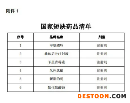 據(jù)賽柏藍(lán)梳理,國(guó)家短缺藥品清單共納入6個(gè)藥品,分別是甲氨蝶呤、垂體后葉注射液、芐星青霉素、米托蒽醌、新斯的明、硫代硫酸鈉。