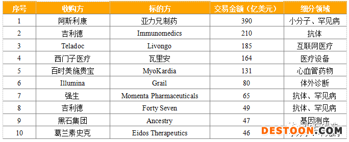 表1:2020年全球生物醫(yī)藥領(lǐng)域十大并購交易事件