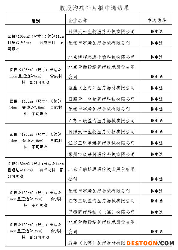 腹股溝疝補片擬中選結(jié)果包括強生、巴德等械企。