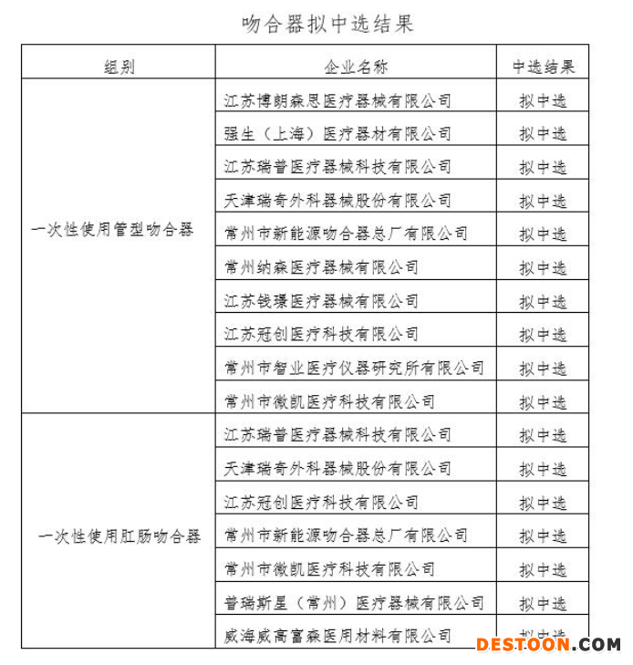 吻合器擬中選結(jié)果包括強生、威高、天津瑞奇等械企;