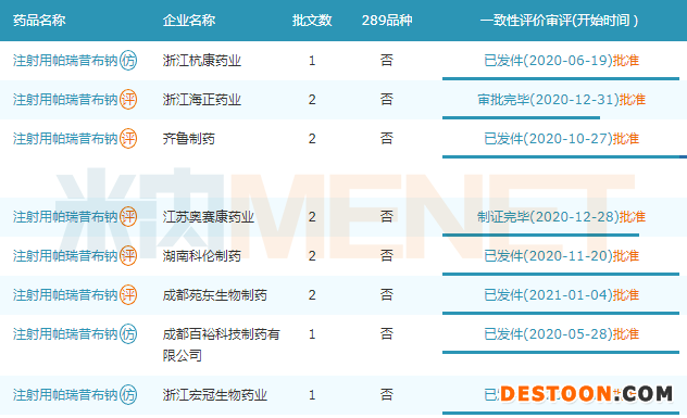 注射用帕瑞昔布鈉此前過評企業(yè)