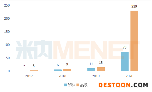 2020年是注射劑一致性評(píng)價(jià)的爆發(fā)年。以藥品批準(zhǔn)日期及批件簽發(fā)日期計(jì),2017-2019年過評(píng)的注射劑分別有2個(gè)品種(受理號(hào)3個(gè))、6個(gè)品種(受理號(hào)9個(gè))、11個(gè)品種(受理號(hào)15個(gè))。而2020年過評(píng)的注射劑有73個(gè)品種(受理號(hào)229個(gè)),不僅數(shù)量較前三年大幅增加,一致性評(píng)價(jià)補(bǔ)充申請(qǐng)也大開閘,以新注冊(cè)分類報(bào)產(chǎn)不再是注射劑過評(píng)的主要方式,早期布局注射劑一致性評(píng)價(jià)的企業(yè)獲益顯著。