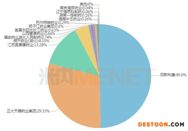 米內(nèi)網(wǎng)數(shù)據(jù)顯示,近年在中國城市公立醫(yī)院、縣級公立醫(yī)院、城市社區(qū)中心及鄉(xiāng)鎮(zhèn)衛(wèi)生院(簡稱中國公立醫(yī)療機(jī)構(gòu))終端艾司奧美拉唑(埃索美拉唑)注射劑保持10%以上的增速,2019年銷售額突破30億元;2020年上半年同比下滑-1.56%,其中,阿斯利康市場份額最大。值得注意的是,隨著國內(nèi)藥企的發(fā)力,近年來阿斯利康的市場份額快速下滑,從2015年的獨(dú)占市場到2020年上半年已跌破50%。