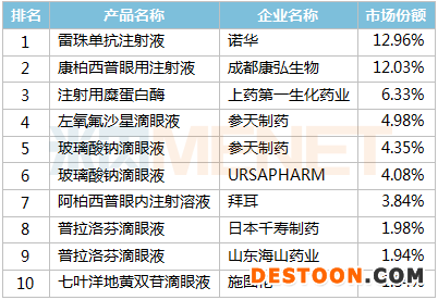 中國公立醫(yī)療機(jī)構(gòu)終端眼科用藥產(chǎn)品TOP10