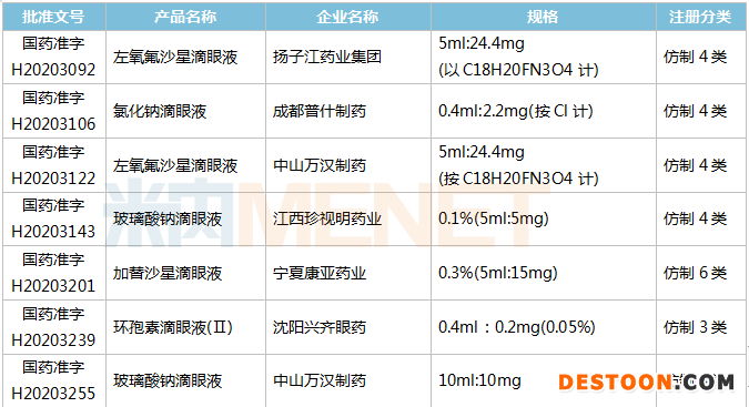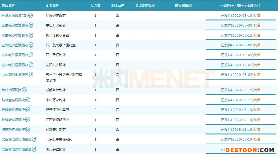 米內(nèi)網(wǎng)數(shù)據(jù)顯示,2020年上半年中國城市公立醫(yī)院、縣級(jí)公立醫(yī)院、城市社區(qū)中心以及鄉(xiāng)鎮(zhèn)衛(wèi)生院(簡稱中國公立醫(yī)療機(jī)構(gòu))終端地夸磷索眼用制劑銷售額同比增長超過300%,地夸磷索鈉滴眼液生產(chǎn)企業(yè)僅有參天制藥一家。目前,該產(chǎn)品齊魯制藥和恒瑞醫(yī)藥子公司成都盛迪醫(yī)藥均以仿制4類提交上市申請?jiān)趯徳u(píng)審批中(在藥審中心)。