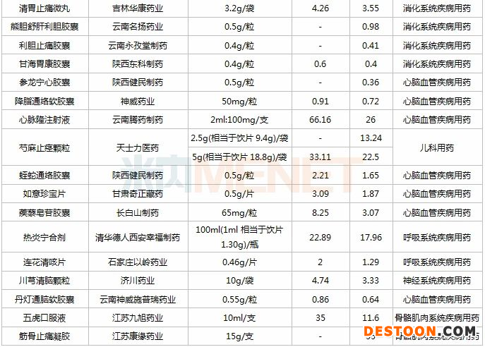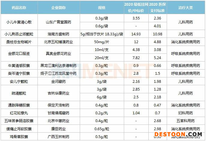 表1:納入2020版全國(guó)醫(yī)保目錄的獨(dú)家中成藥(單位:元)