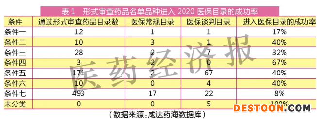 通過形式審查的申報(bào)藥品名單中,符合這個條件的有12個產(chǎn)品。其中,只有2個產(chǎn)品能最終進(jìn)入醫(yī)保目錄,成功率不到20%。