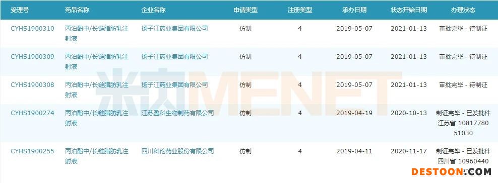 圖2:目前已過評的丙泊酚中/長鏈脂肪乳注射液