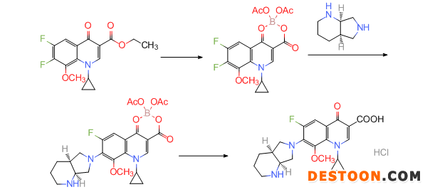 鹽酸莫西沙星合成工藝路線(xiàn)如下: