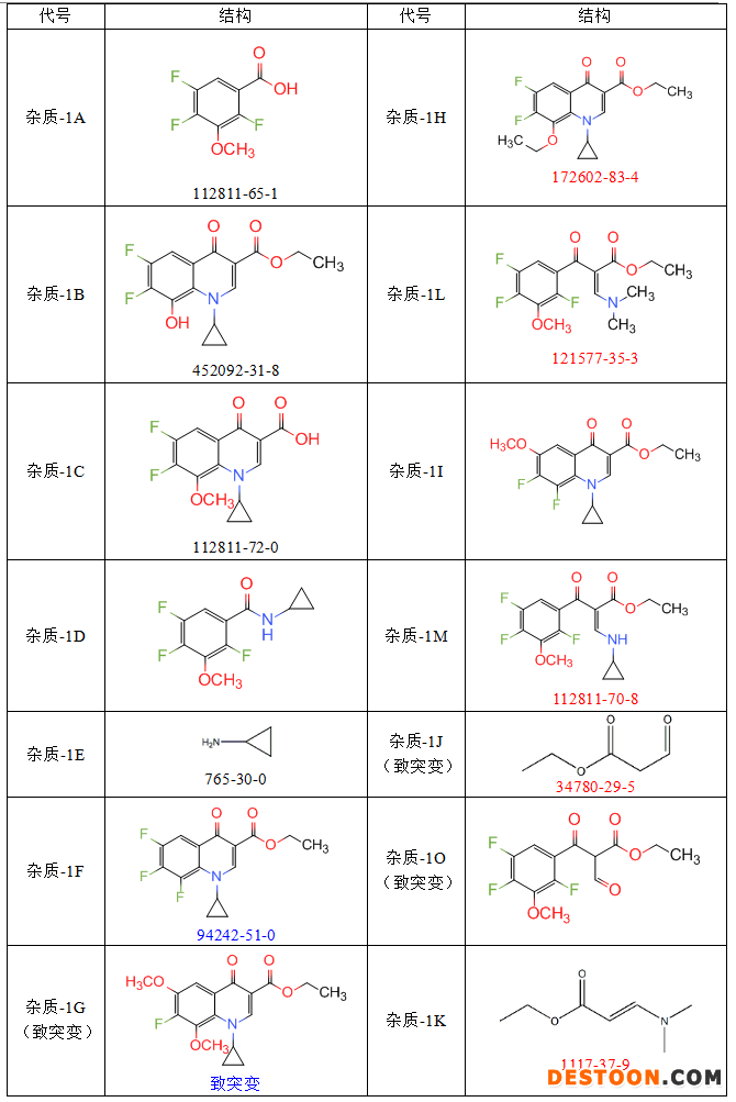 3.2起始原料:1-環(huán)丙基-6,7-二氟-1,4-二氫-8甲氧基-4-氧代-3-喹啉羧酸乙酯
