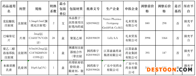 據(jù)了解,禮來的度拉糖肽注射液、巴瑞替尼片,豪森的聚乙二醇洛塞那肽注射液等產(chǎn)品通過了2020年談判,進入醫(yī)保目錄,新支付價預(yù)計于今年3月份正式執(zhí)行,雖然談判價格尚未公布,但可以通過這次價格調(diào)整對最終結(jié)果做出預(yù)判。