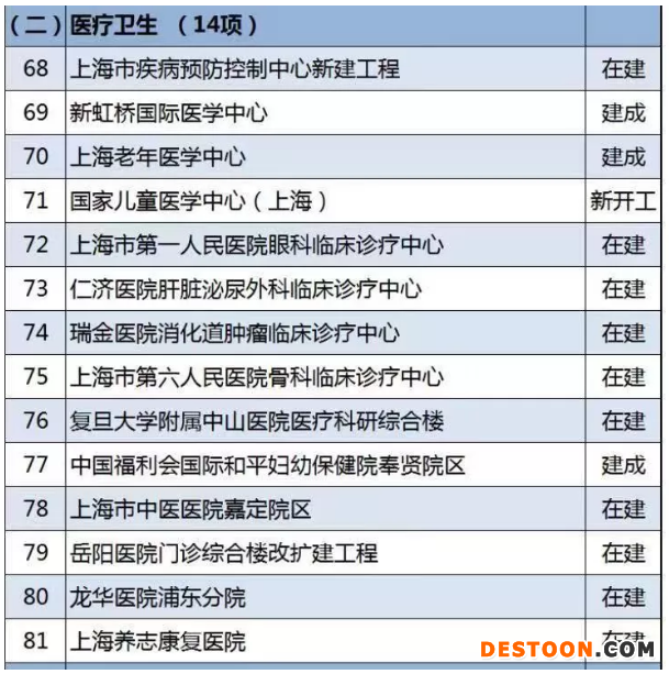 《清單》中,上海市對(duì)2021年即將落地的重大建設(shè)項(xiàng)目進(jìn)行了公布。值得注意的是,在166項(xiàng)正式項(xiàng)目中,共涵蓋了14項(xiàng)醫(yī)療衛(wèi)生相關(guān)建設(shè)內(nèi)容。