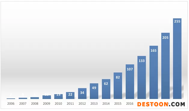 據(jù)艾媒網(wǎng)分析,2006年至2016年中藥配方顆粒市場規(guī)模由2億元增長到107億元,年復(fù)合增長率高達(dá)48.9%,預(yù)計(jì)到2020年中藥配方顆粒市場規(guī)模將達(dá)到255億元。有機(jī)構(gòu)預(yù)測中藥配方顆粒行業(yè)在未來五年的市場規(guī)模仍將保持快速增長,預(yù)計(jì)到2023年,行業(yè)規(guī)模將達(dá)492.1億元。