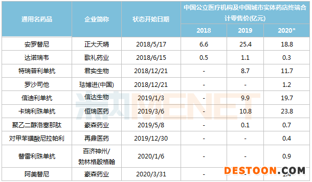 注:2020年銷售額為中國公立醫(yī)療機構H1數(shù)據(jù)+中國城市實體藥店全年預測數(shù)據(jù)
