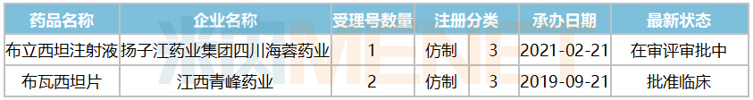 表1:目前國內(nèi)布立西坦相關(guān)制劑的上市申請情況