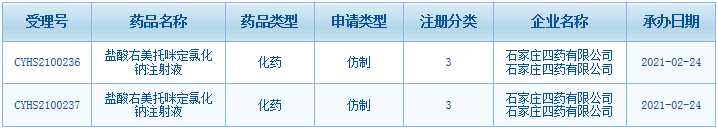 截至目前,鹽酸右美托咪定注射液已有江蘇正大清江制藥、石藥銀湖制藥、石家莊四藥等7家企業(yè)以仿制3類(lèi)提交上市申請(qǐng)?jiān)趯徳u(píng)審批中(在藥審中心),鹽酸右美托咪定氯化鈉注射液有揚(yáng)子江藥業(yè)集團(tuán)、湖南科倫制藥、成都倍特藥業(yè)3家企業(yè)以仿制3類(lèi)提交上市申請(qǐng)?jiān)趯徳u(píng)審批中(在藥審中心),獲批后將視同過(guò)評(píng)。