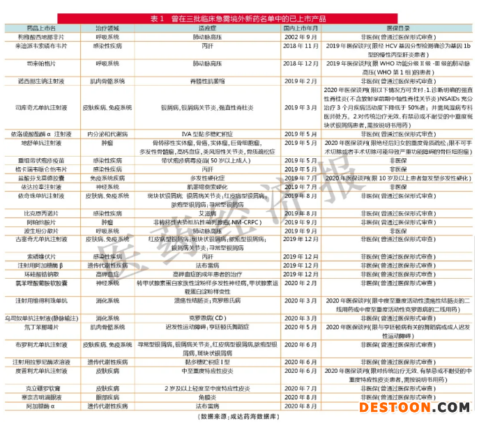 2020年首次國內(nèi)上市的臨床急需境外新藥目錄的產(chǎn)品共9個,全部通過醫(yī)保形式審查,最終進(jìn)入醫(yī)保談判目錄3個。