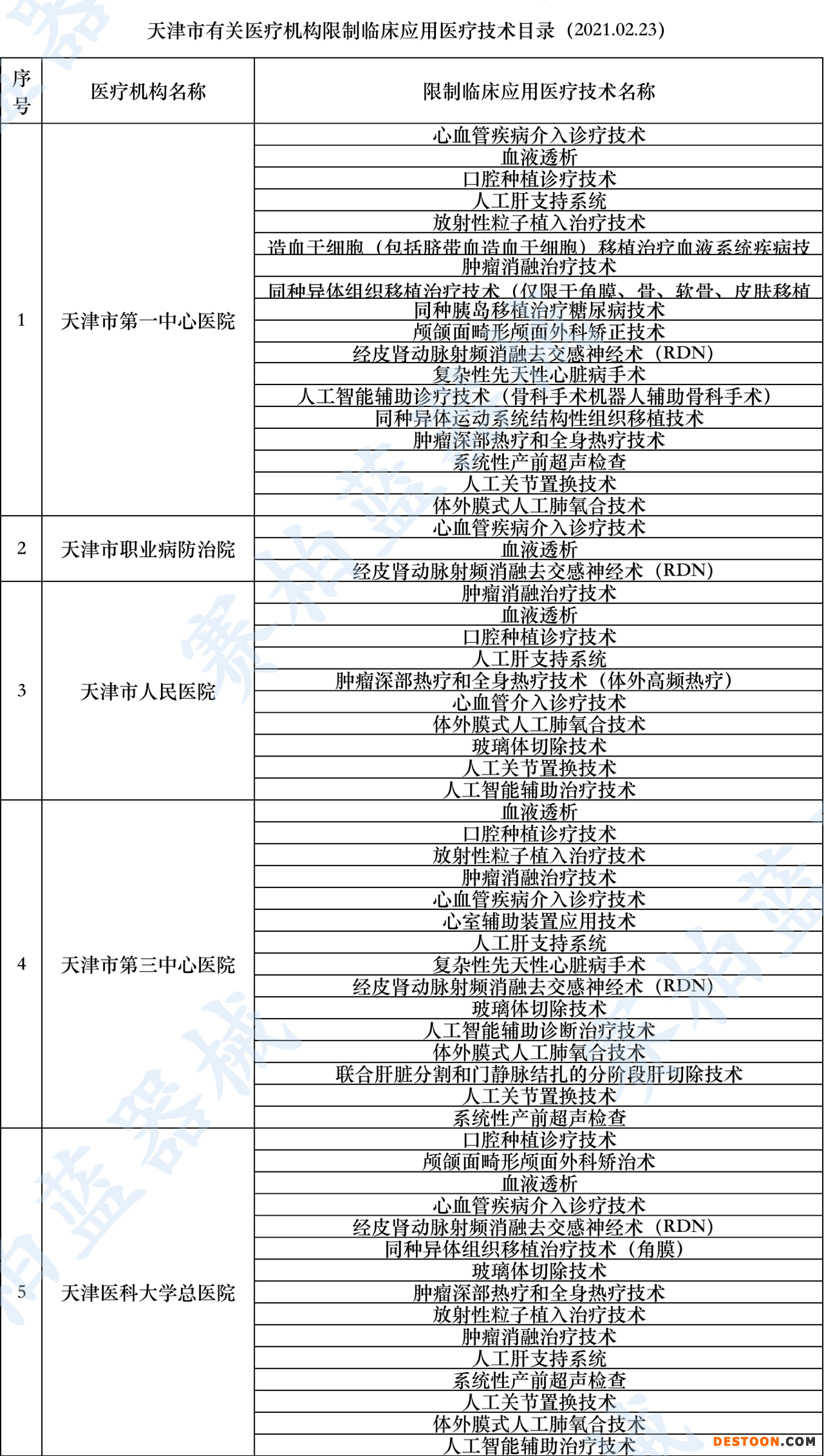 日前,天津衛(wèi)健委發(fā)布《有關(guān)醫(yī)療機(jī)構(gòu)限制臨床應(yīng)用醫(yī)療技術(shù)目錄》的通知,對(duì)天津市大批醫(yī)療機(jī)構(gòu)限制臨床應(yīng)用醫(yī)療技術(shù)進(jìn)行公布(文末附名單)。包括心血管疾病介入診療技術(shù)、血液透析、神經(jīng)血管介入診療技術(shù)、人工膝關(guān)節(jié)置換技術(shù)、腫瘤消融治療技術(shù)等35項(xiàng)。