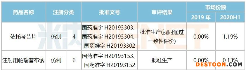 表1:苑東生物2019年獲批上市的肌肉骨骼系統(tǒng)產(chǎn)品情況