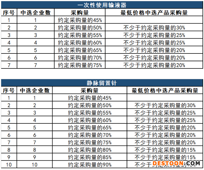 一次性使用輸液器按照材質(zhì)分為4個競價組,靜脈留置針按照是否帶有接頭分為6個競價組。
