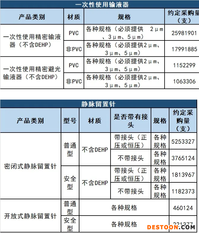 一次性使用輸液器按照材質(zhì)分為4個(gè)競(jìng)價(jià)組,靜脈留置針按照是否帶有接頭分為6個(gè)競(jìng)價(jià)組。