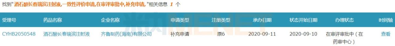 一致性評(píng)價(jià)方面,目前齊魯制藥(海南)的酒石酸長(zhǎng)春瑞濱注射液一致性評(píng)價(jià)補(bǔ)充申請(qǐng)?jiān)趯徳u(píng)審批中。