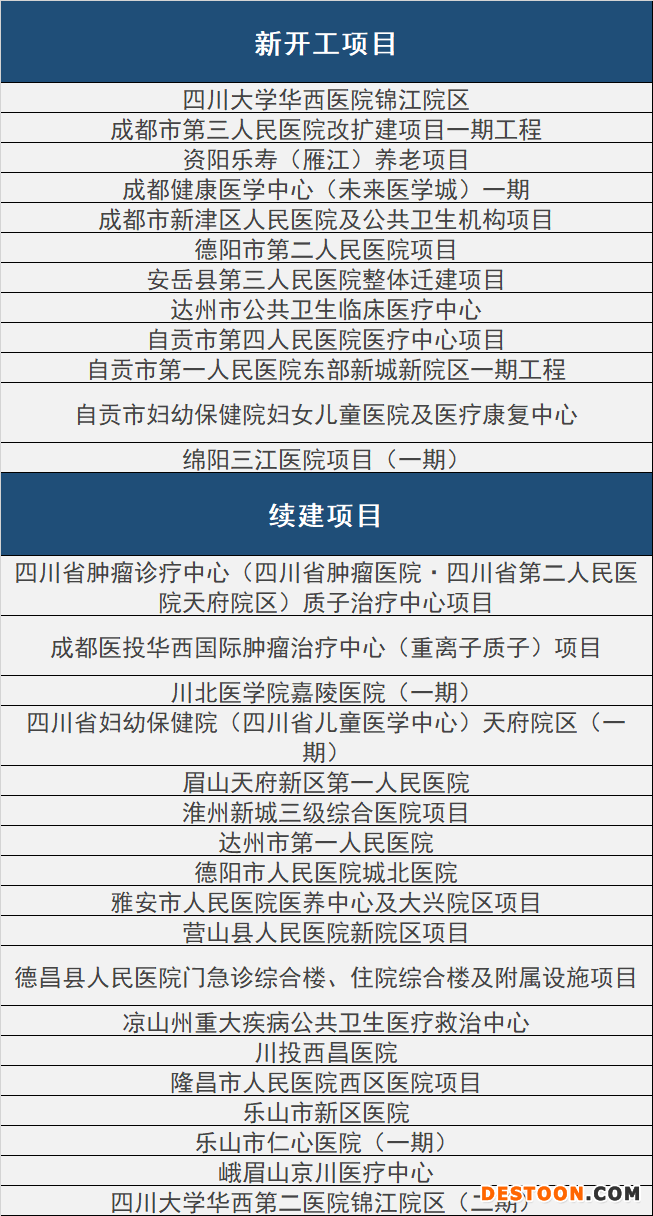 日前,四川省發(fā)改委公布2021年度重點(diǎn)項(xiàng)目名單,其中新開(kāi)工、續(xù)建醫(yī)療項(xiàng)目名單如下: