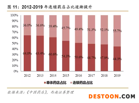 藥店消失,一方面是關(guān)門歇業(yè),另一個出口則是被大的連鎖藥店兼并,近年來,大型連鎖藥店的擴(kuò)張速度越來越快,一個很重要的原因就是兼并小的藥店。