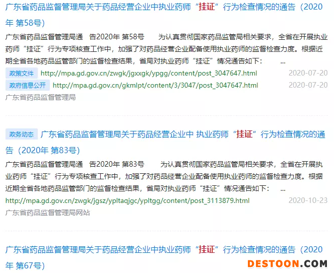 廣東省近年來也不斷發(fā)布對藥師掛證的處罰通告,可見國家對于此類現(xiàn)象嚴(yán)查之心。